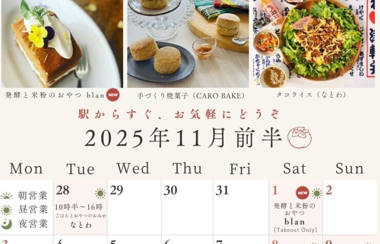2025年11月前半の営業カレンダー